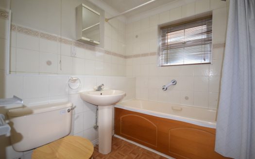 BATHROOM 7′ 3" x 5′ 6" (2.21m x 1.68m) Double glazed frosted window to rear, three piece suite, low flush W/C, pedestal wash hand basin with separate taps, paneled bath with mixer taps and shower attachment, tiled splash backs.